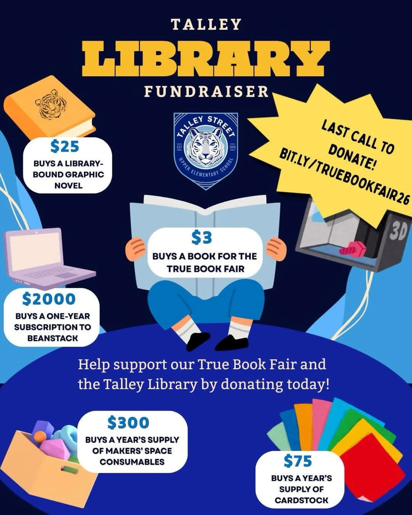 All Talley parents, teachers, and staff are automatically members of the PTO! We fund our initiatives through donations alone, so each year we ask that each family make an ‘annual donation.’ You can do that here.
