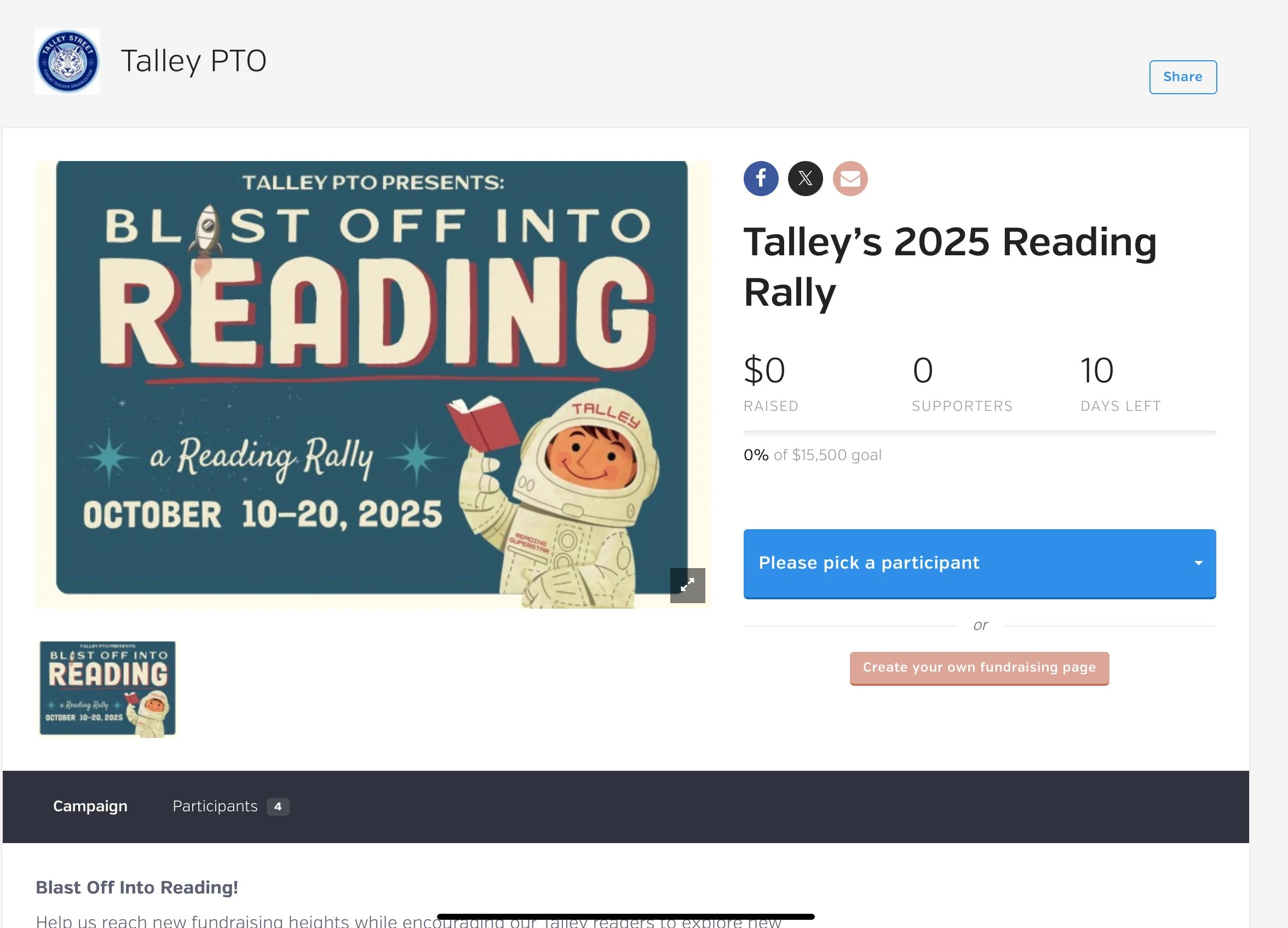 Our fall Reading Rally is a fun way to promote literacy while also raising funds to support teachers, staff, and students at Talley throughout the year. These funds raised will help: